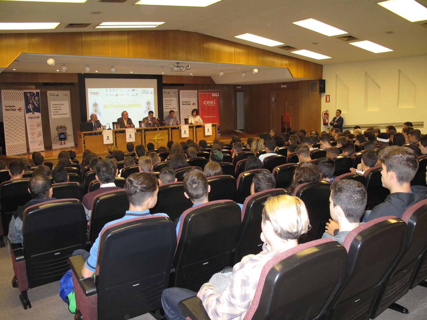 Guadalajara, 11 de octubre de 2018, En su apuesta por la innovación, el Centro Europeo de Empresas e Innovación de Guadalajara (CEEI Guadalajara), en colaboración con la Fundación Ibercaja, ha presentado la segunda edición de su competición de robótica y desafío steam en la que participarán, a lo largo de siete meses, 16 centros educativos, en la primera edición participaron cuatro centros, por lo que el aumento ha sido considerable y abarca toda la provincia de Guadalajara y que cuenta con la colaboración de DosPZ, Guadabótica (robótica y programación para niños), APETI, Ayuntamiento de Guadalajara, Diputación Provincial de Guadalajara, Junta de Comunidades de Castilla-La Mancha, el Fondo Europeo de desarrollo regional “una manera de hacer Europa”, Flexbot, El hormiguero 3.0, EBN, Citroën-Auracar y 8Vertices.