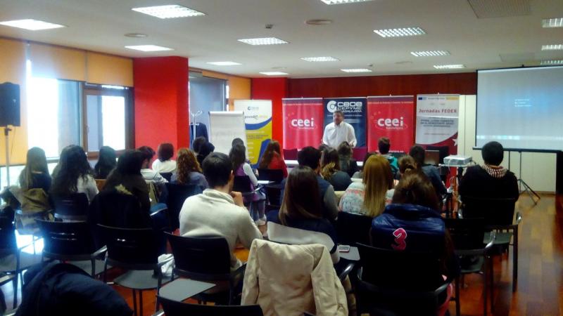 Guadalajara, 15 de abril de 2015, Alumnos del IES Brianda de Mendoza de Guadalajara, han asistido esta mañana, en el Centro Europeo e Innovación de Guadalajara (CEEI Guadalajara), a una jornada informativa donde han aprendido cómo competir en Europa. Enrique Aranda, técnico del CEEI alcarreño les ha mostrado, bajo la ponencia “PYME, ¿cómo competir en el Horizonte 2020?, como las empresas pueden beneficiarse de este instrumento de competitividad, financiación y crecimiento.