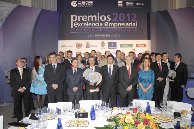 Guadalajara, 26 de noviembre de 2012, La noche del sábado se convirtió en especial para los 13 premiados y la mención especial, con la entrega de los Premios Excelencia Empresarial 2012 de CEOE-CEPYME Guadalajara, con los que la Confederación de Empresarios alcarreña clausuraba su 9º Congreso Empresarial donde las jornadas de coaching, mejorar la competitividad mediante la gestión eficiente de la energía, la internacionalización de la PYME y las ventas, fueron las protagonistas.