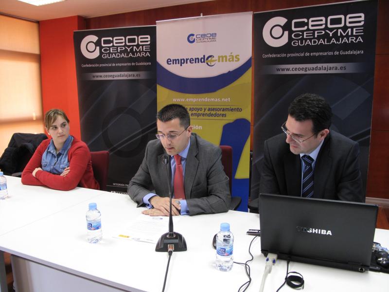 Guadalajara, 11 de marzo de 2014, Con el objetivo de acercar los proyectos de emprendedores y PYMES a posibles inversores, CEOE-CEPYME Guadalajara ha presentado el programa Emprende+Ban de la Confederación regional de empresarios (CECAM) y que cuenta con la financiación del ministerio de Industria, Energía y Turismo, que se suma a Emprende+más, en el fomento del tejido empresarial de la región.