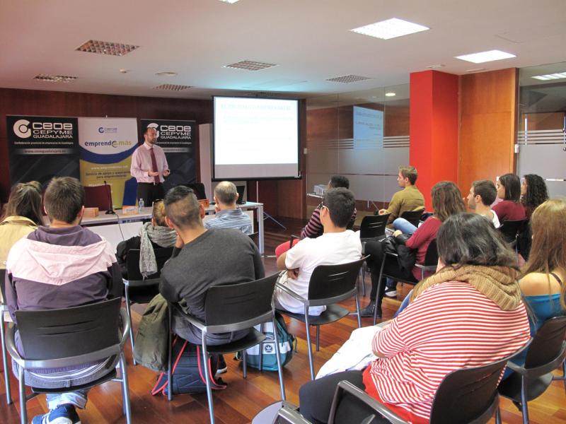 Guadalajara, 24 de noviembre de 2014, Los técnicos de CEOE-CEPYME Guadalajara del programa Emprende+más de CECAM han desarrollado esta mañana, un nuevo taller de emprendedurismo para jóvenes, en esta ocasión ha tenido lugar con 25 alumnos del IES Brianda de Mendoza y se les ha enseñado como ser empresario, así como los pasos que tienen que seguir para llegar a montar su propia empresa.