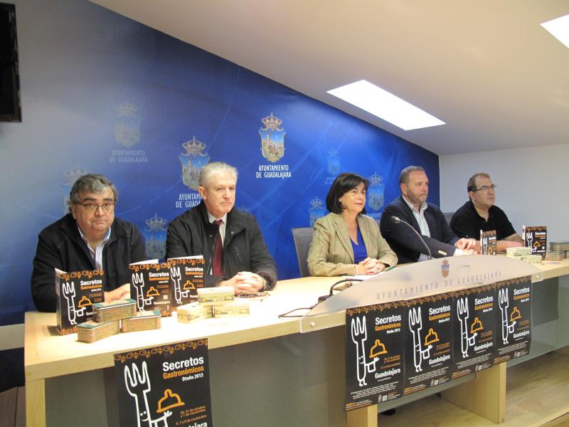 Isabel Nogueroles, concejal de Turismo, acompañada por Juan Luis Pajares, presidente de la Federación de Turismo de Ceoe-Cepyme, y de una nutrida representación de hosteleros locales, ha presentado hoy una iniciativa que desde su implantación, en 2010, ha hecho de la gastronomía y la cultura "uno de los principales reclamos turísticos de Guadalajara", según ha señalado la edil responsable de esta propuesta.