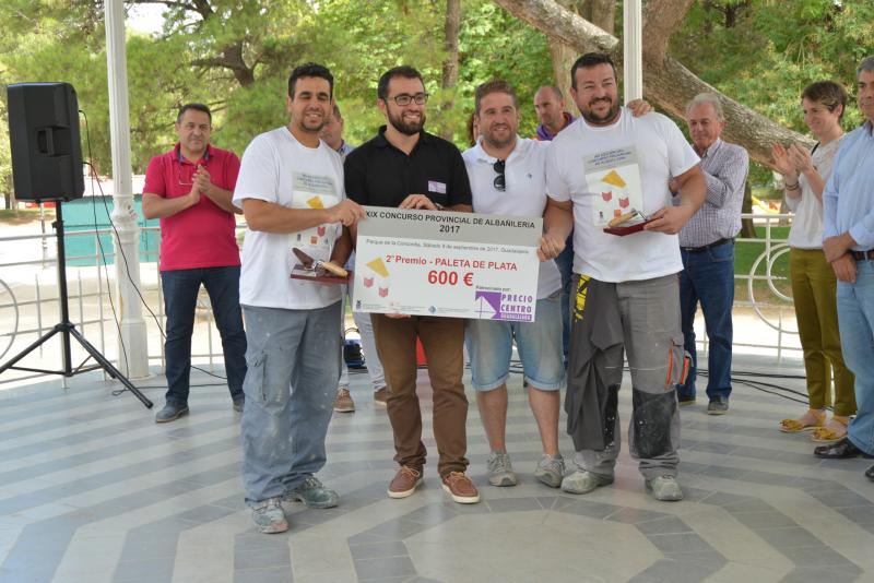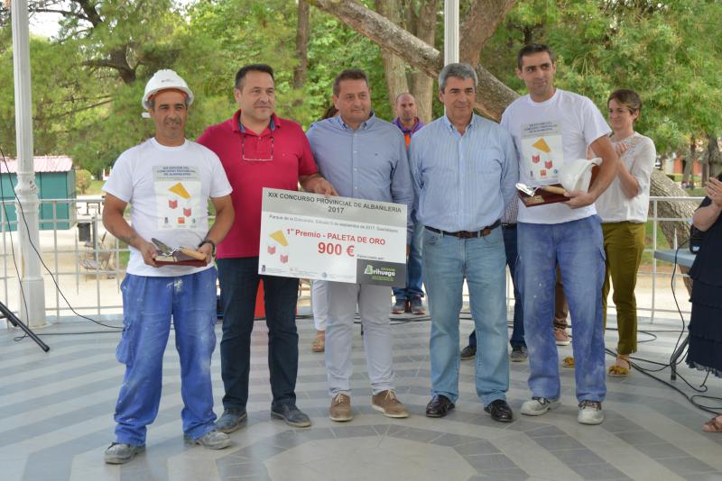 Guadalajara, 11 de septiembre de 2017, Pablo Conchuela y Alfonso de las Heras, han sido los ganadores del XIX concurso de Albañilería, recibiendo su Paleta de Oro y 900 euros, de manos de Azulejos Brihuega.
