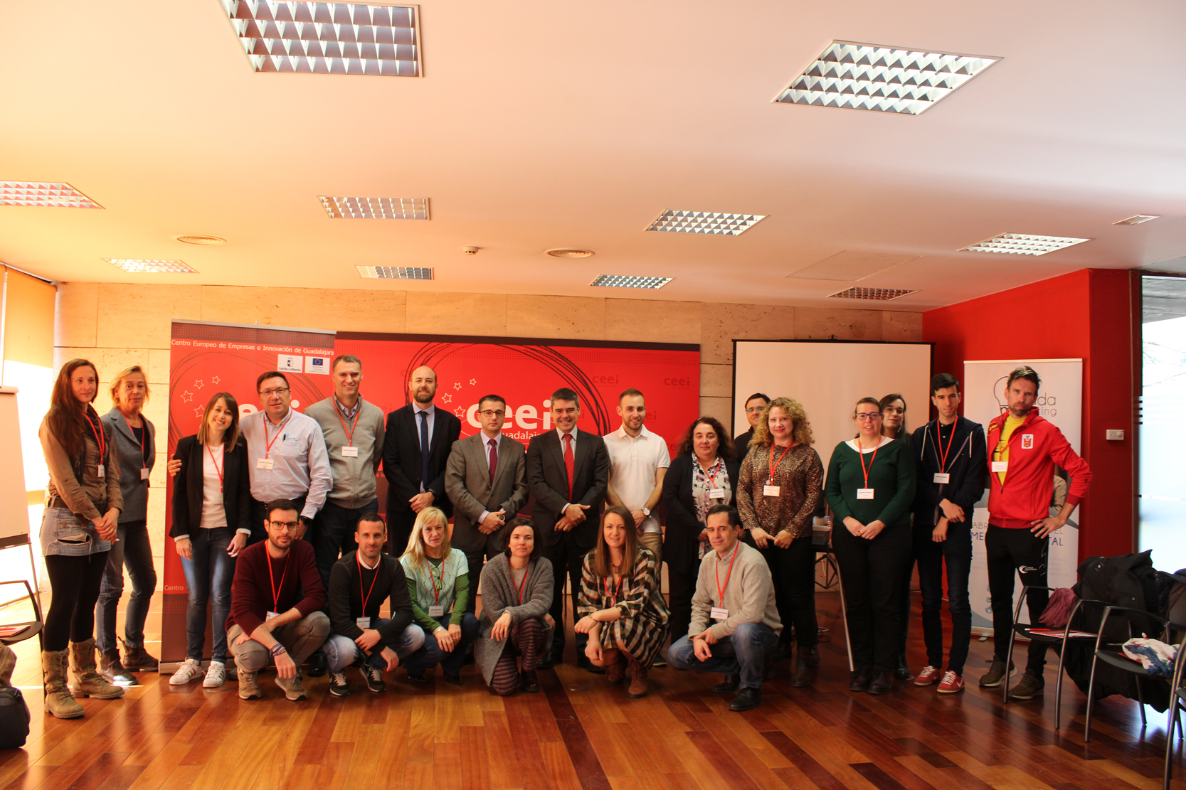 Guadalajara, 20 de febrero de 2019, El programa de emprendimiento colaborativo del la Fundación Centro Europeo de Empresas e Innovación de Guadalajara (CEEI Guadalajara), ha dado comienzo con su primera jornada que también ha servido de inauguración, en la cual han estado presentes Javier Arriola, director del CEEI alcarreño y Santiago Baeza, director provincial de Economía, Empresas y Empleo de la Junta de Comunidades de Castilla-La Mancha, Enrique Aranda, director técnico del CEEI alcarreño y Sergio Berbería, gerente de GuadaMarketing, empresa colaboradora del evento, que cuenta con la cofinanciación de la Junta de Comunidades de Castilla-La Mancha y el Fondo Social Europeo.