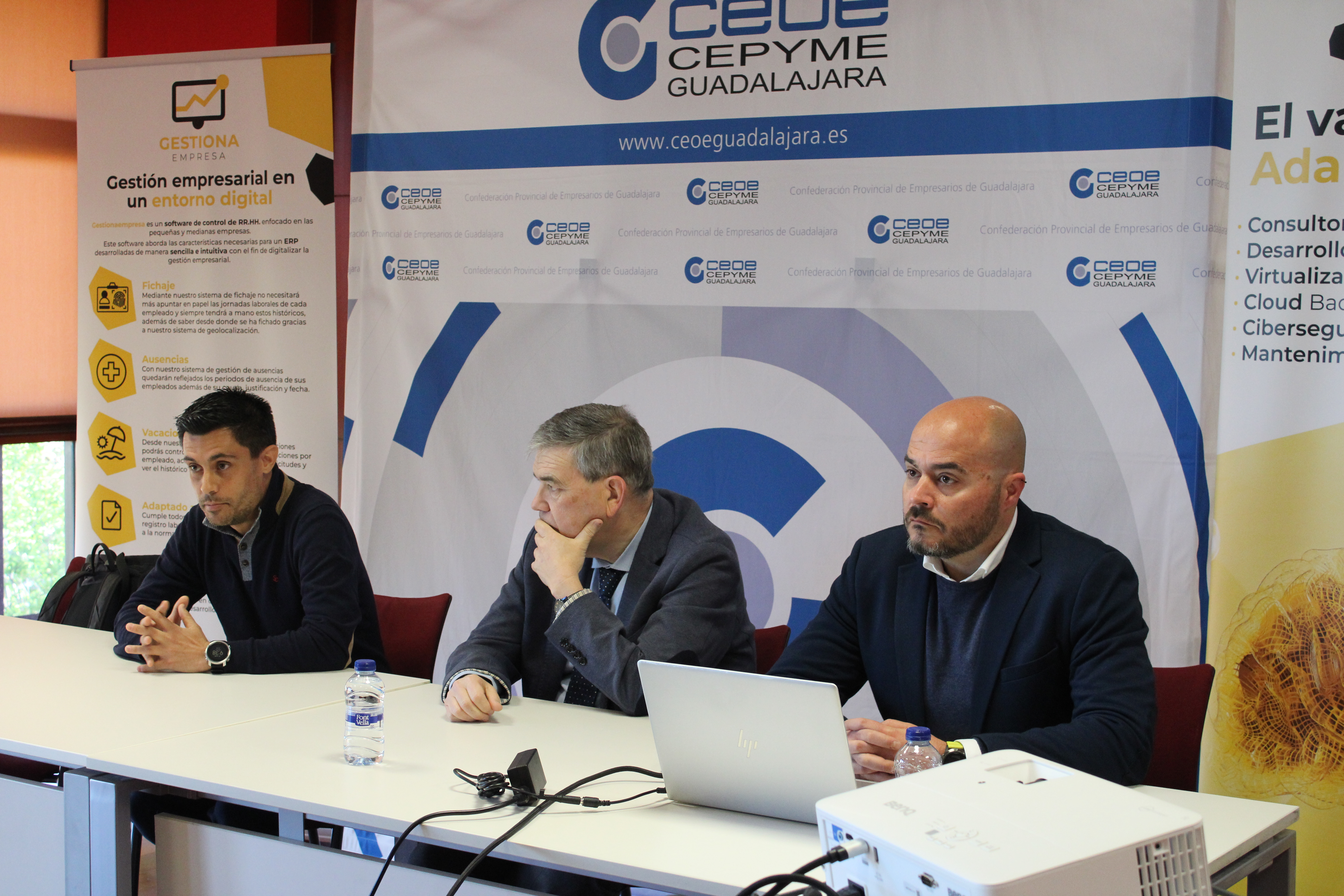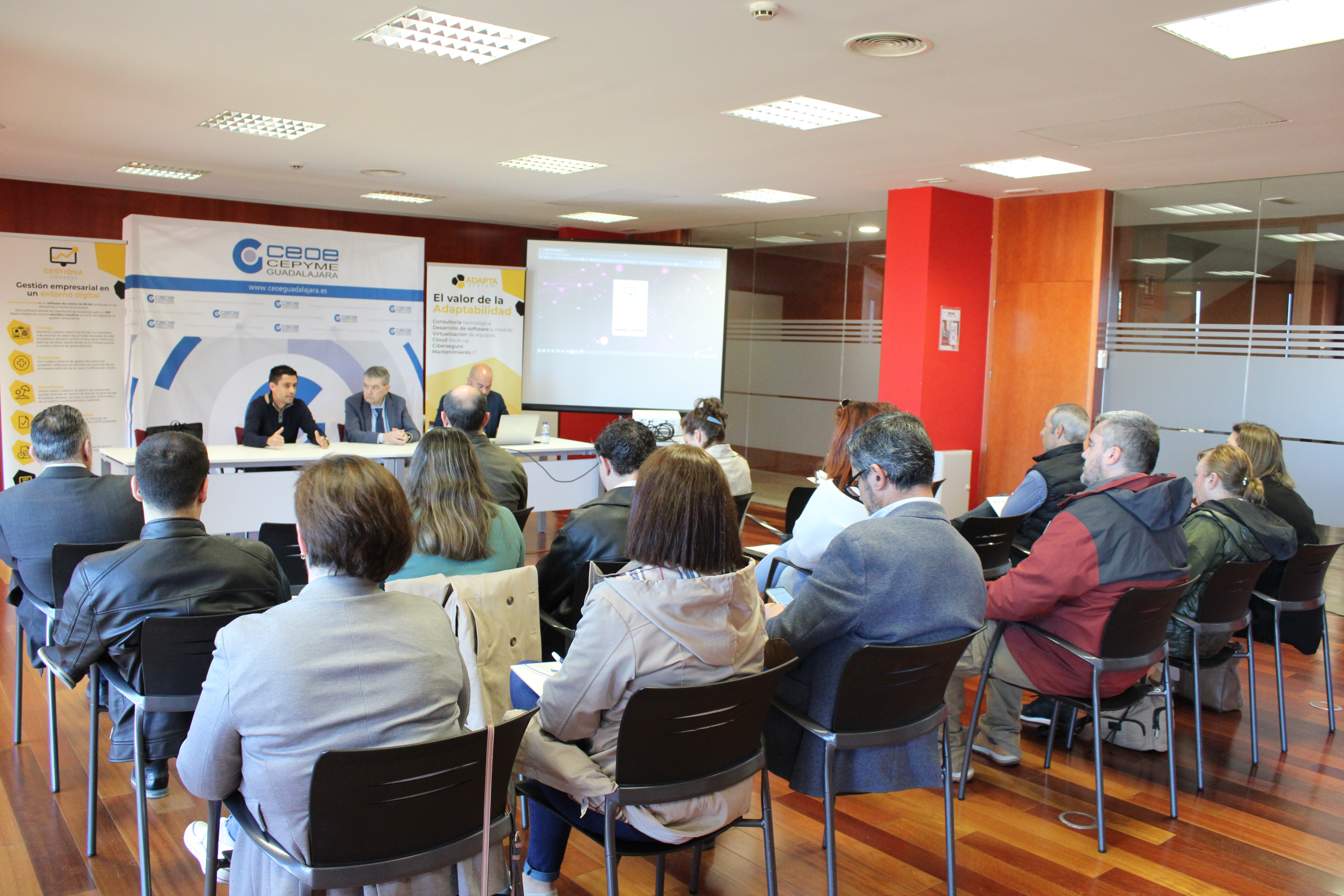 Los responsables de Adapta System, Iván Arriola y Sergio Estriégana, han sido los encargados de mostrar los aspectos más importantes del programa con una demostración, mientras que Agustín Carrillo, director del departamento Jurídico de CEOE-CEPYME Guadalajara, ha explicado la normativa vigente al respecto.
