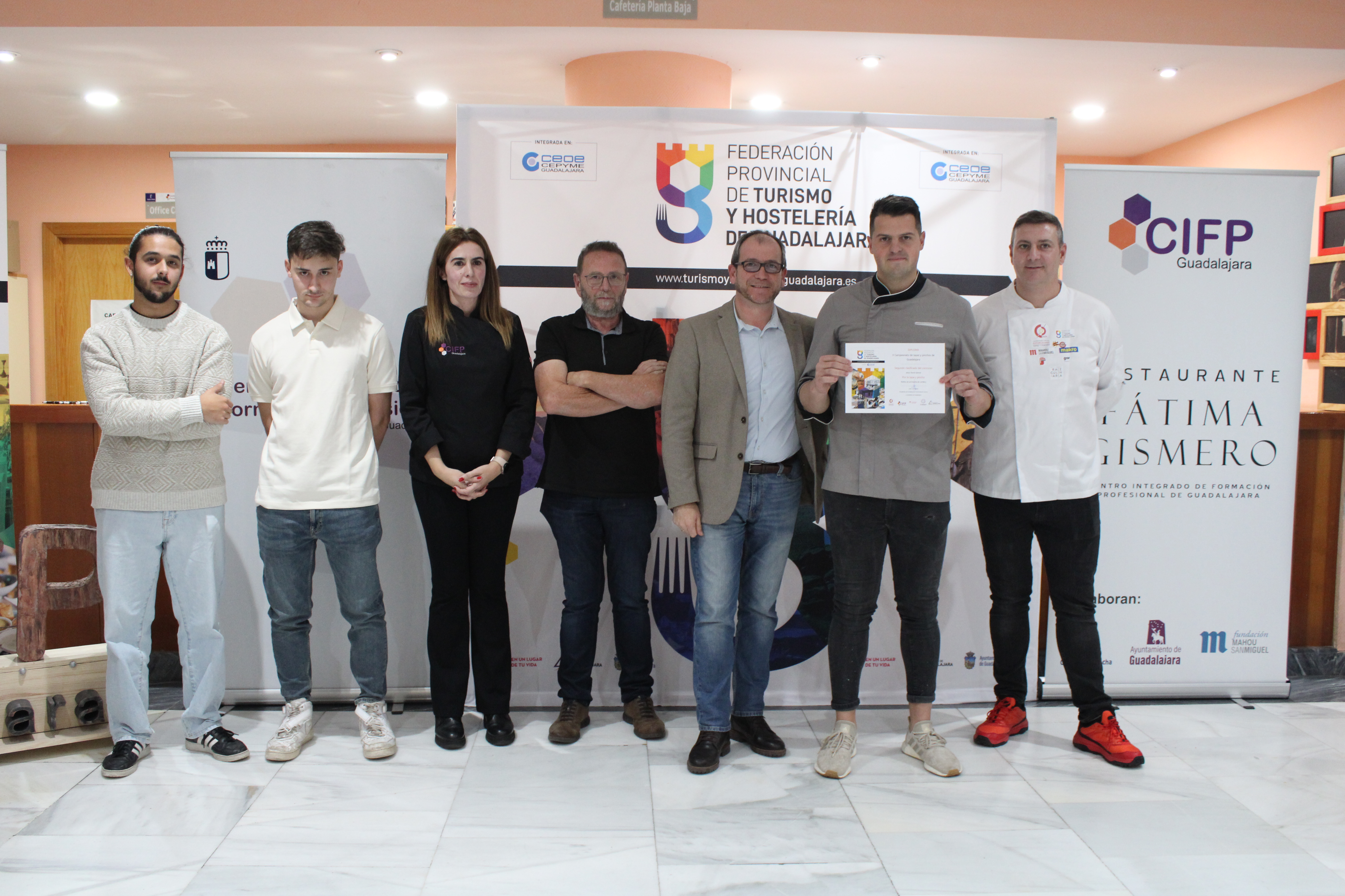 A esta fase final, llegaron ocho finalistas, Jesús Pardo, del restaurante Dama Juana, Diego Fernández, del restaurante La Duquesa, ambos de Guadalajara, Irene Letón de la Casa de Comidas A la Finca de Villaviciosa de Tajuña, Nacho Padín del restaurante Fardel de Guadalajara, Sergio Belotti, de Experiencias HyD de Cobeta, Alberto Merchante, de El Rincón de la Espe, ubicado en Albalate de Zorita, Álvaro Lucía, de Las Horneras de Cobeta,de Cobeta y Alberto Olivera, cocinero de Hotel Castilla Termal de Brihuega, que salieron de la cerca de una veintena de tapas y pinchos propuestos de establecimientos ubicados a lo largo de toda la provincia de Guadalajara.