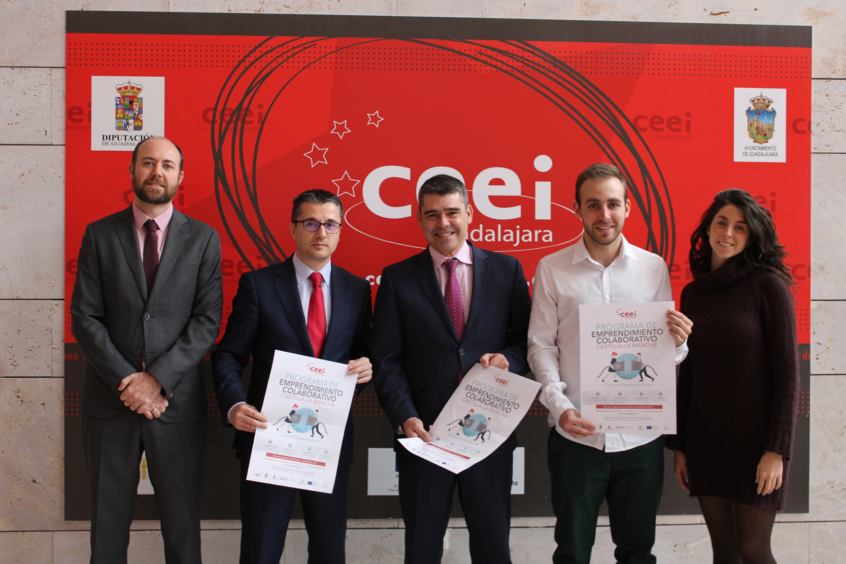 Guadalajara, 31 de enero de 2019, La Fundación Centro Europeo de Empresas e Innovación de Guadalajara (CEEI Guadalajara), ha puesto en marcha el Programa de emprendimiento colaborativo, con el objetivo de fomentar e impulsar la red de contactos de los proyectos que están en su fase inicial. En la presentación del programa estuvieron presentes Javier Arriola, director del CEEI alcarreño, Santiago Baeza, director provincial de Economía, Empresas y Empleo de la Junta de Comunidades de Castilla-La Mancha y Sergio Berbería, gerente de GuadaMarketing, empresa colaboradora del evento y la cofinanciación de la Junta de Comunidades de Castilla-La Mancha y el Fondo Social Europeo.