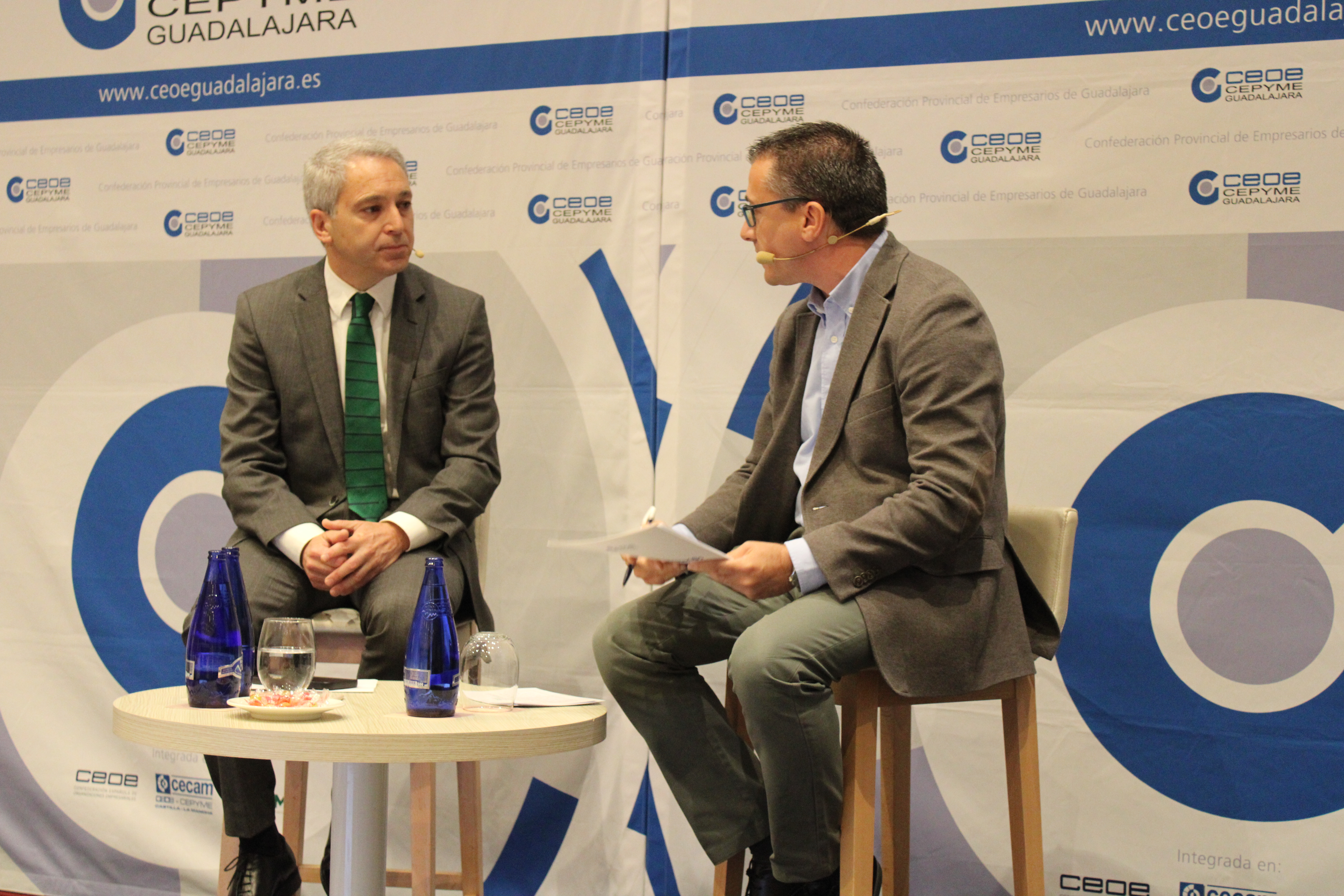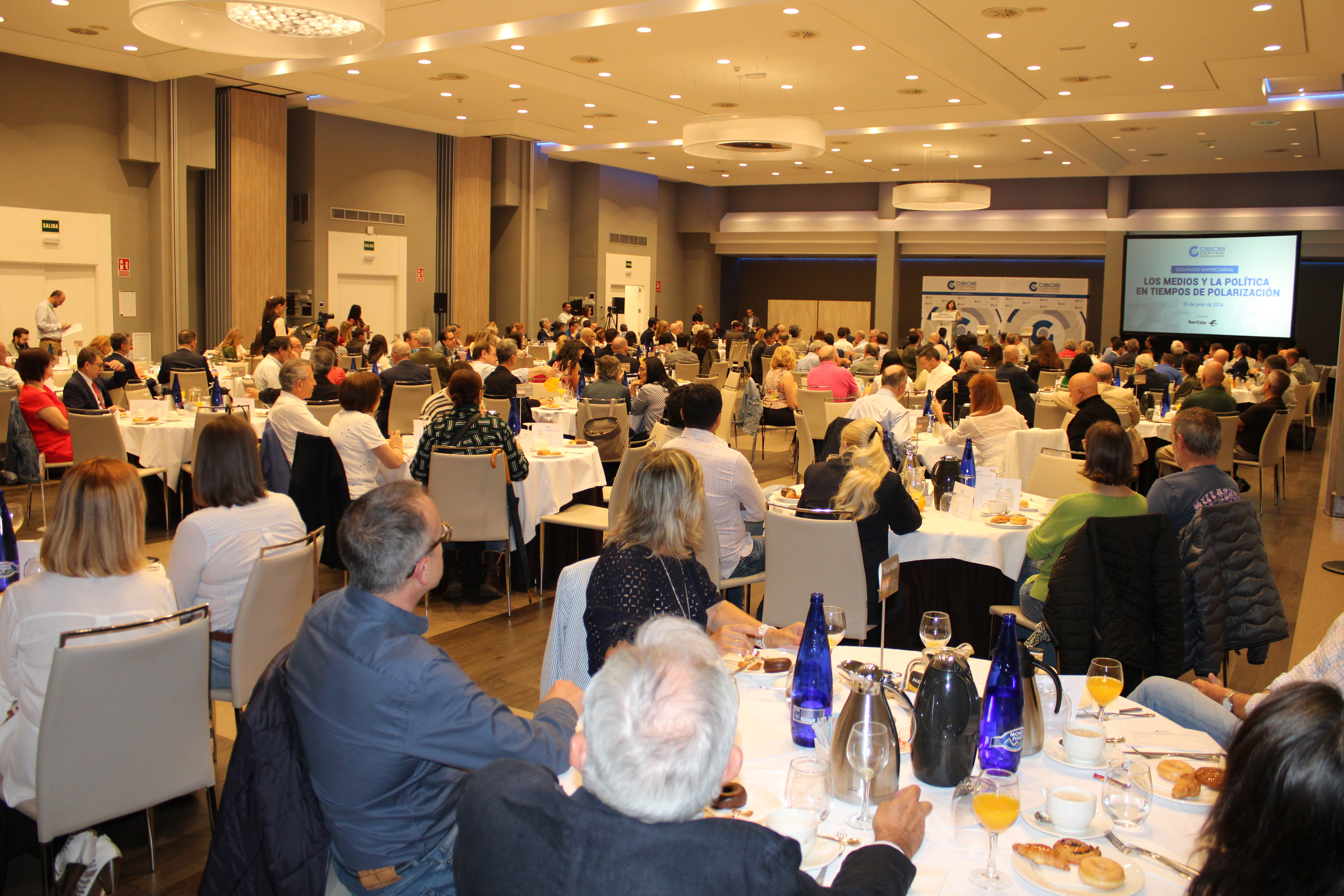 Un desayuno empresarial que ha estado organizado por CEOE-CEPYME Guadalajara en colaboración con Ibercaja, con un gran éxito de afluencia de empresarios, políticos y representes de la sociedad civil de la provincia de Guadalajara y que ha estado inaugurado por María Soledad García, presidenta de CEOE-CEPYME Guadalajara y José Ángel Pérez, director territorial de Ibercaja.