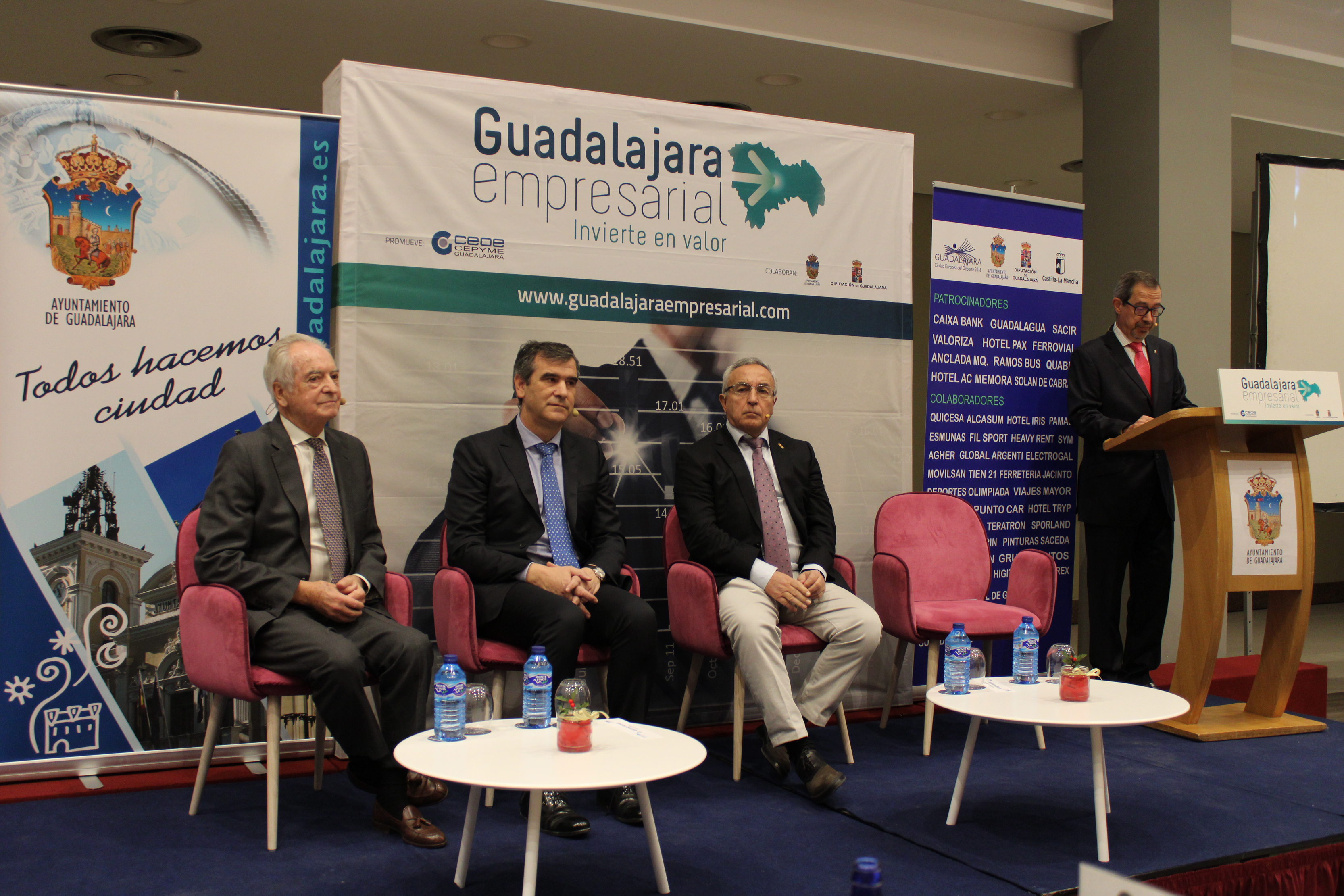 Guadalajara, 27 de diciembre de 2018, En el marco del programa “Guadalajara Empresarial”, impulsado por el Ayuntamiento de Guadalajara, Diputación Provincial y CEOE-CEPYME Guadalajara, hoy se ha desarrollado en el Hotel Tryp Guadalajara el desayuno empresarial “Balance de un año de éxitos deportivos y de dinamización económica de Guadalajara”. Una cita en la que han participado el alcalde de Guadalajara, Antonio Román, el presidente de CEOE-CEPYME Guadalajara, Agustín de Grandes y Alejandro Blanco, presidente del Comité Olímpico Español.