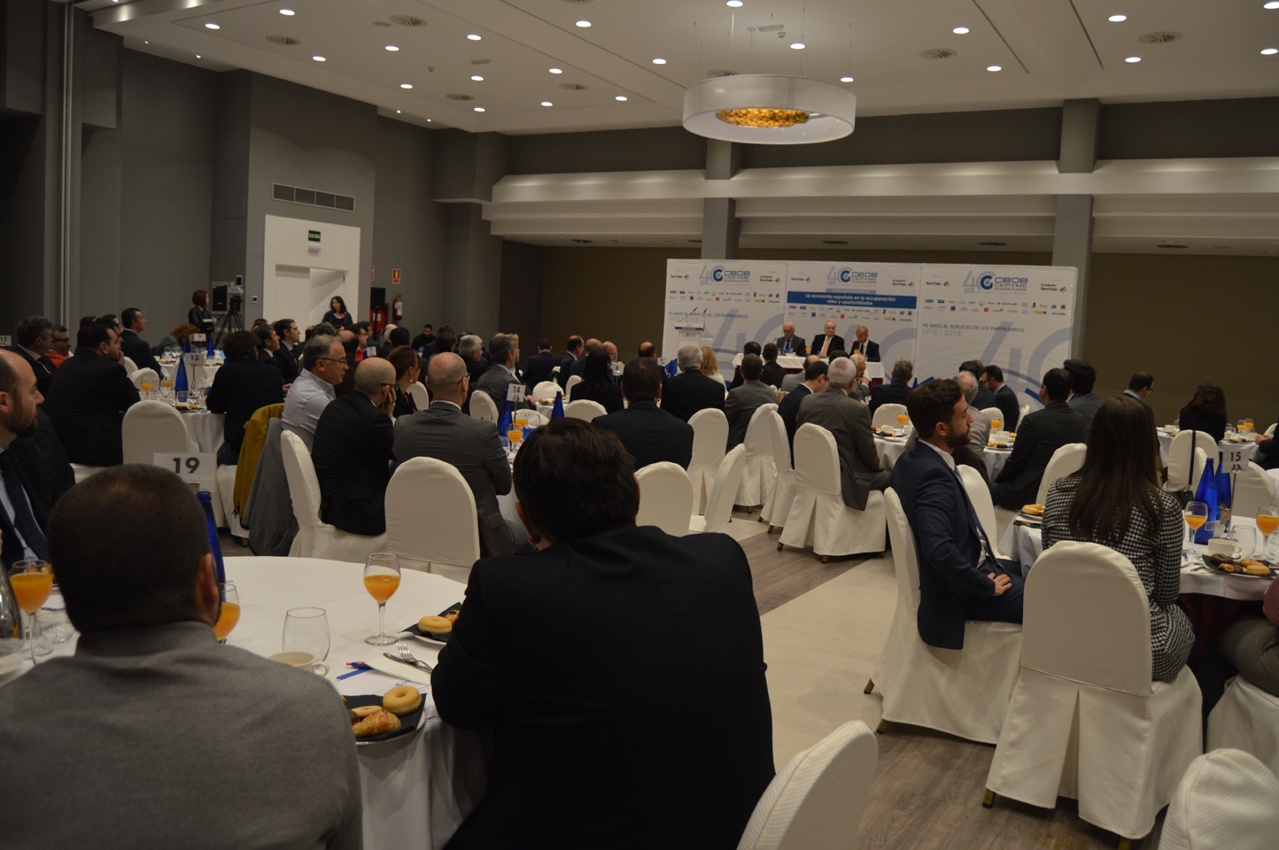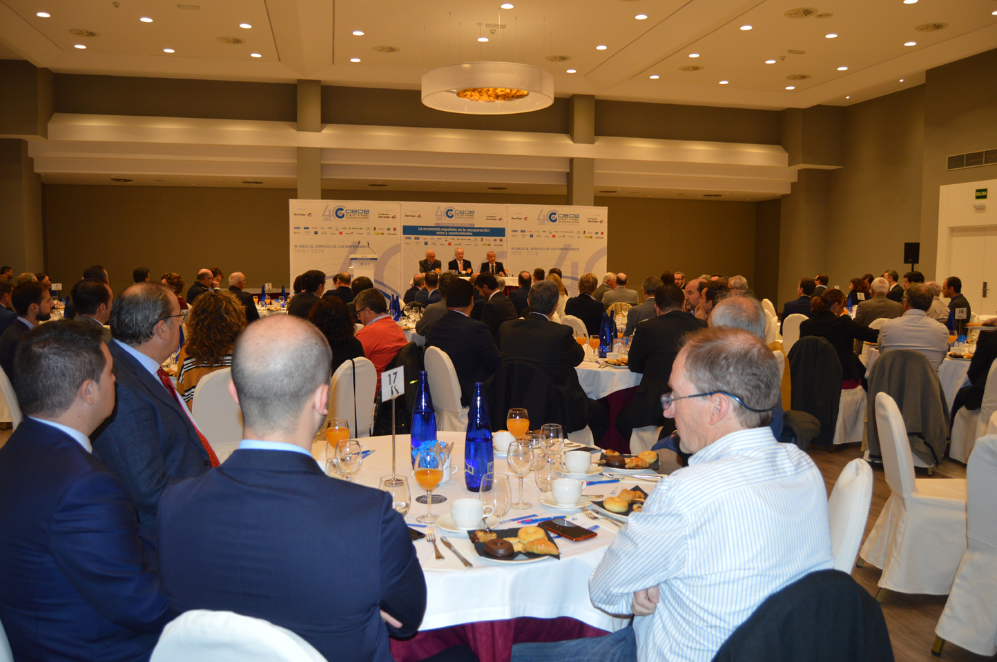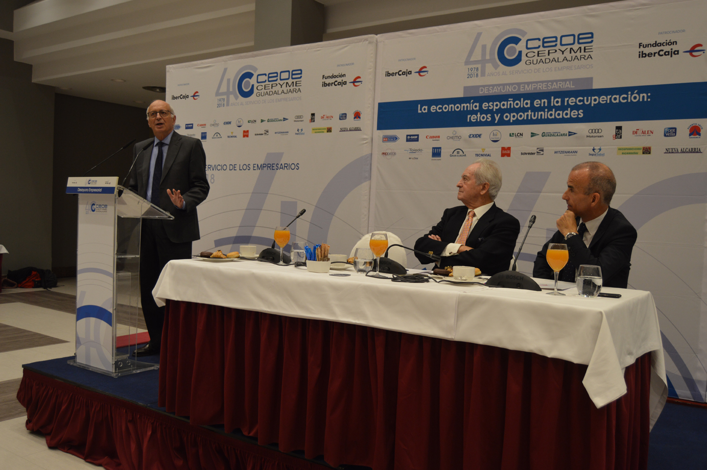 La inestabilidad institucional en España, la deuda, el crédito de las familias o el sector público, fueron otros de los temas tratados ante los más de 150 empresarios asistentes al desayuno empresarial de CEOE-CEPYME Guadalajara con motivo de su 40 aniversario.