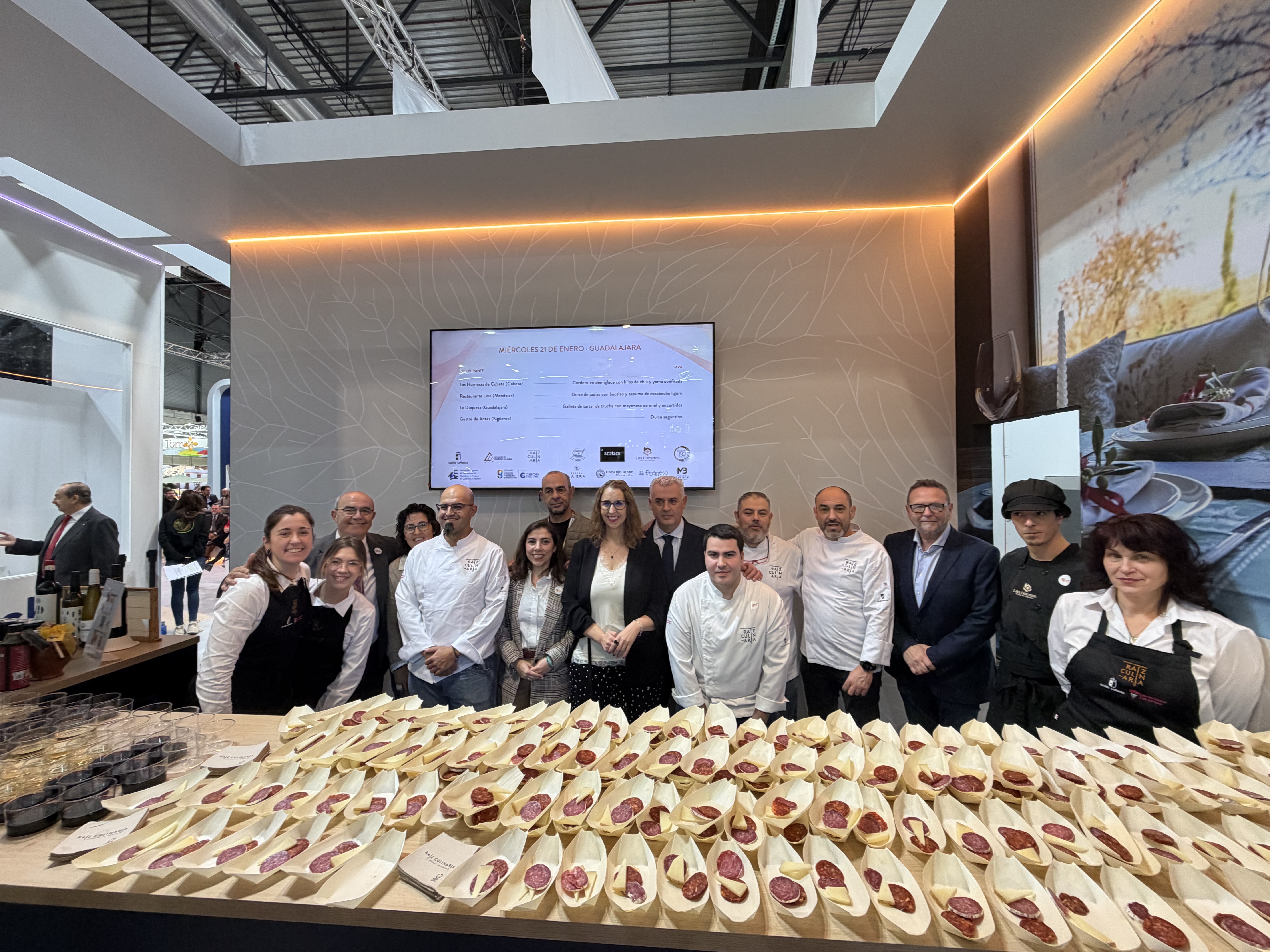 Guadalajara, 21 de enero de 2026, La Federación provincial de Turismo y Hostelería de la provincia de Guadalajara, integrada en CEOE-CEPYME Guadalajara, fue la encargada, en el día de Guadalajara, al tiempo que de la inauguración, en el stand de Castilla-La Mancha en Fitur, de deleitar a los visitantes con tapas y platos típicos de la provincia elaborados todos, con productos de nuestra tierra.