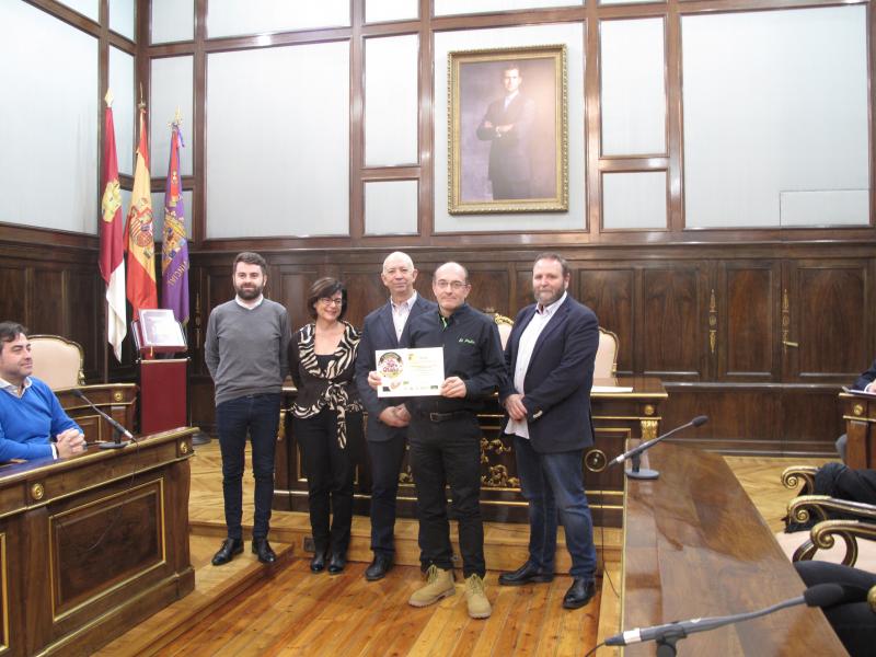 Pub Burger, de Brihuega, por su brocheta de langostinos con champiñón, diploma que ha recogido Fernando Díaz de manos de Jesús Recuero, primer teniente de alcalde de Brihuega.
