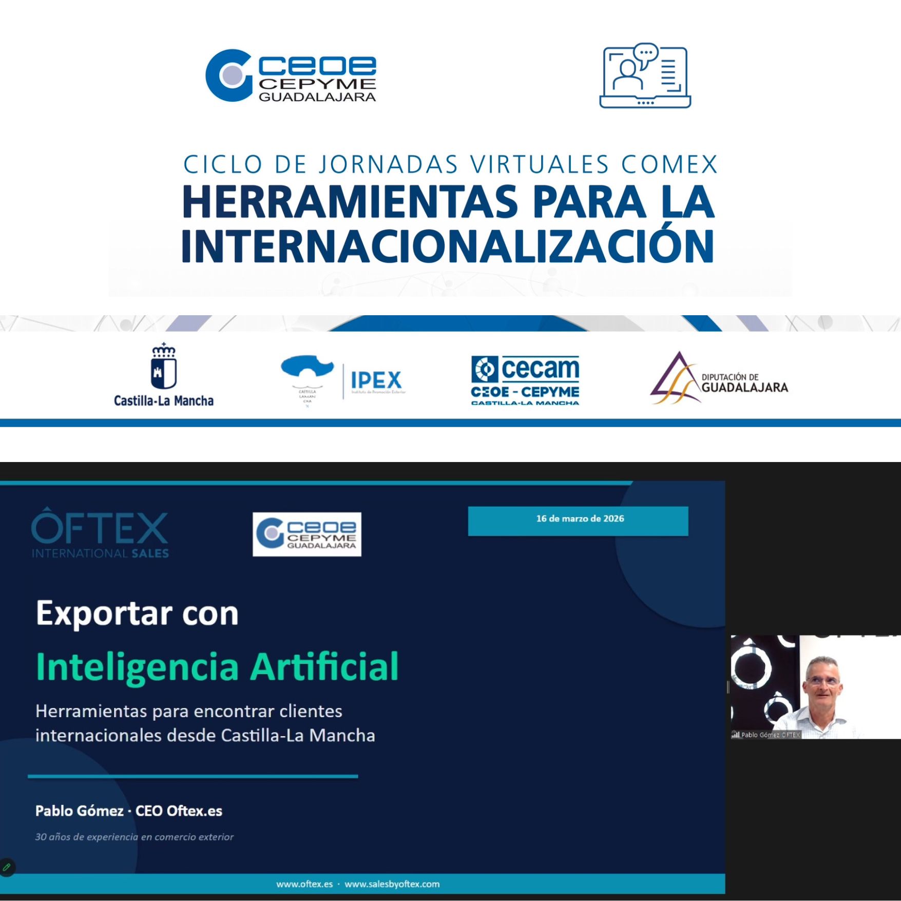 Guadalajara, 20 de marzo de 2026, Un centenar de empresas de la provincia de Guadalajara han participado en el último de los ciclos de jornadas de comercio exterior organizadas por CEOE-CEPYME Guadalajara. Unas sesiones que se han desarrollado a lo largo del mes de marzo de manera online.